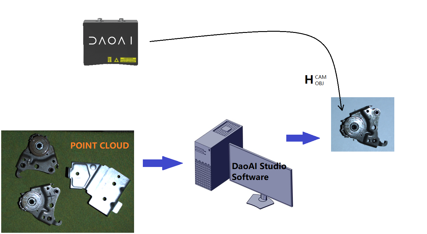假如物体相对于机器人的位姿是未知的,那么这就是 DaoAI 3D视觉发挥作用的地方了。 |