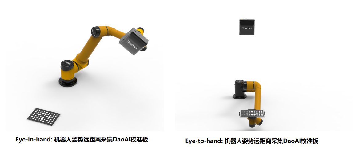假设您已经指定了要拍摄DaoAI棋盘格图像的机器人姿势。查看如何选择适合手眼校准的合适姿势的方法。